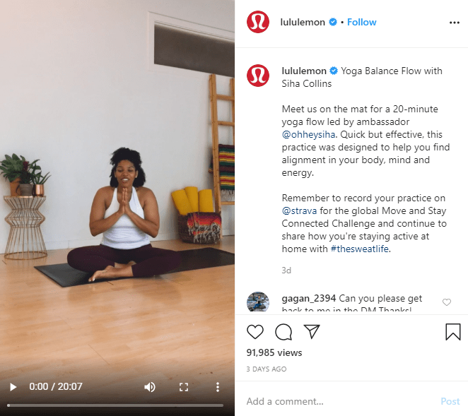 Do a live Q&A, or film the “behind-the-scenes” of what might be going on. Interview engaged customers, or, if you’re a fitness brand, film a new workout segment for your audience to do at home.