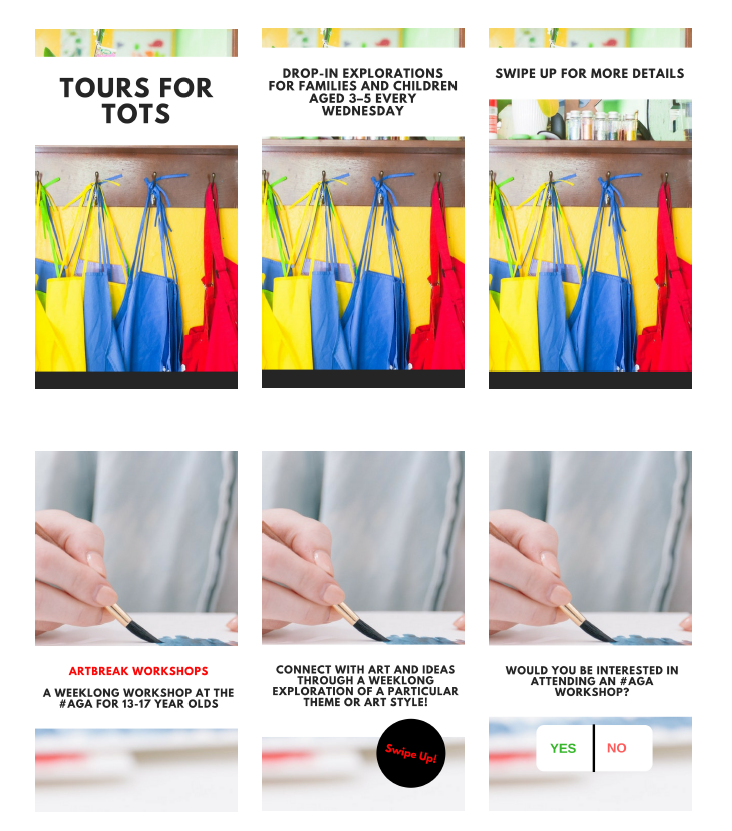 The Art Gallery of Alberta realized just how important Instagram had become in the world of digital marketing, and the communications team was eager to put together a communication strategy focused on Instastories to present to upper management.
