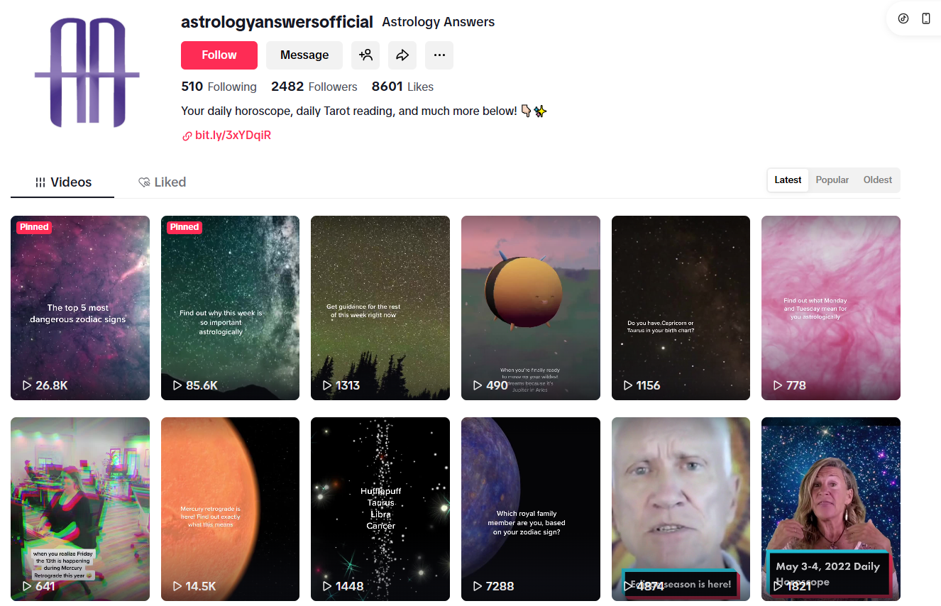 Our CEO was interested in growing our astrology brand and reaching a younger audience. The team wanted to create a TikTok account from scratch so we could use the platform for top-of-funnel awareness and grow it quickly.